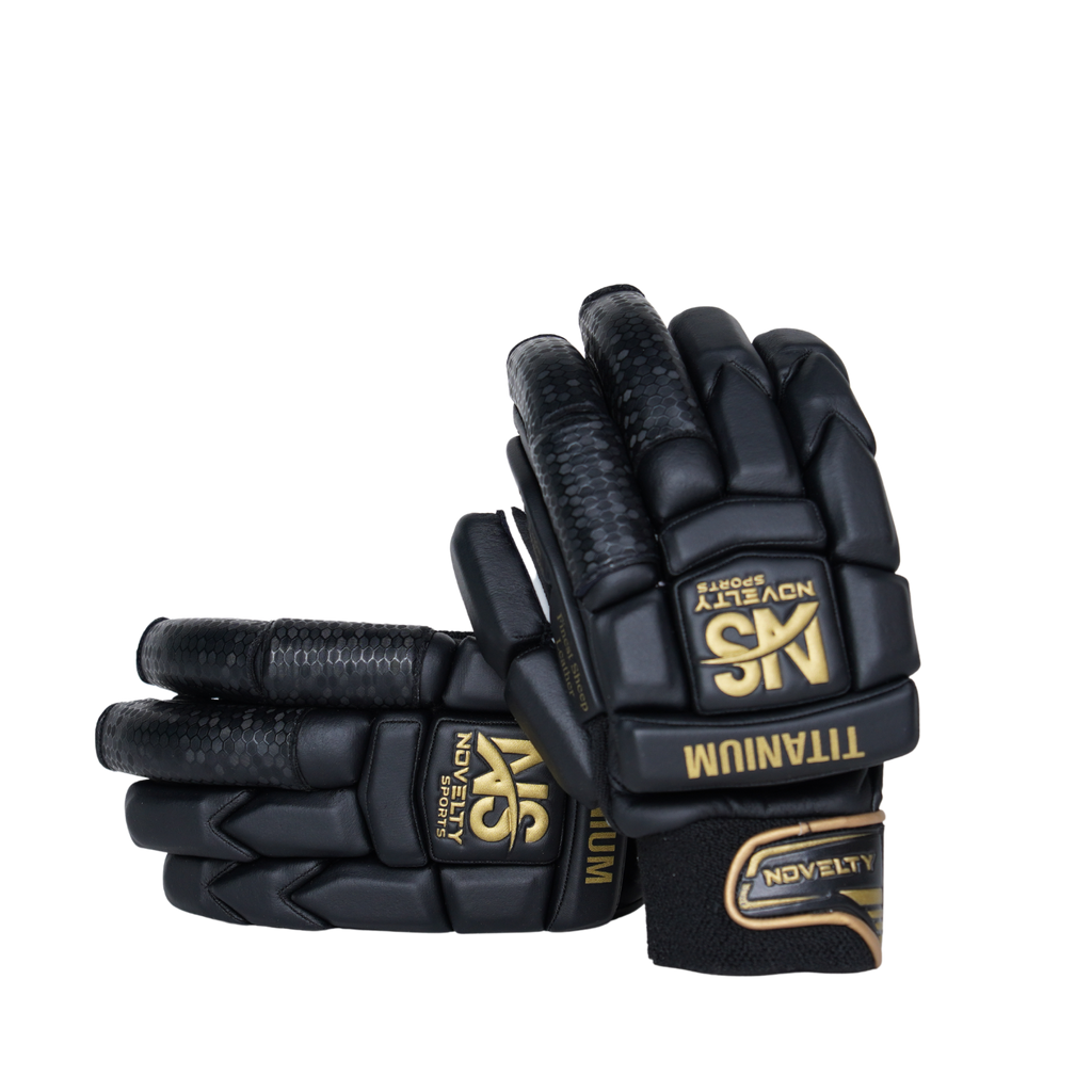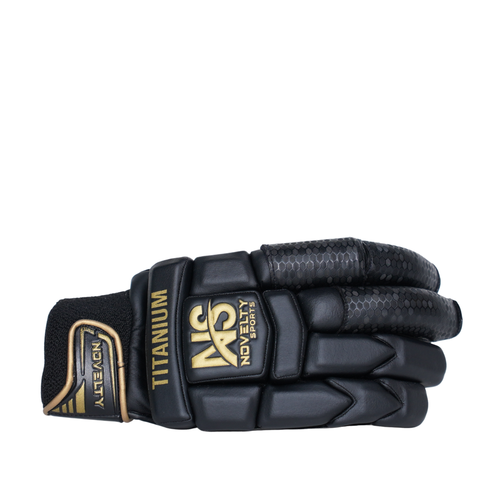 Titanium Black - Our Titanium Black batting gloves combine comfort and protection with high-quality materials. Made from Levlon and low-density foam, they feature an Indian Pittard leather palm for excellent grip and an 18mm sheet for enhanced safety. With cut fingers for better control, three side bars for extra protection, and small holes for airflow, these lightweight gloves are designed to keep you cool and focused on your game.