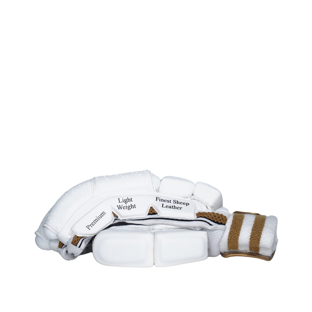 Titanium White - Our White batting gloves offer a perfect blend of comfort and protection. Constructed from Levlon and low-density foam, they feature a premium Pittard leather palm for superior grip and an 18mm sheet for added safety. The cut fingers enhance control, while three side bars provide extra security. Lightweight and breathable, with small holes for airflow, these gloves ensure you stay cool and focused during your game.